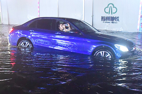 這場暴雨自當天17時起規模加劇,如同瓢潑盆傾。在福州市中心城區,中新社記者注意到,雨勢突然猛烈,大雨中夾雜著冰雹,砸到地面、建築、汽車等處,「砰砰作響」。