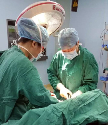 到了五月份,華女士終於無法忍受,來到珠海市中西醫結合醫院乳腺外科就診。五月七日,林紅主任為她手術,完整切除腫物及少許粘連胸大肌組織,約三十四乘二十乘二十三厘米,重達六點五四公斤。由於腫瘤太過巨大,吸收了華女士大部份營養,在術前已經出現了貧血等症狀;同時,腫瘤切除後胸壁有大面積的缺損。林紅通過從患者腹部取皮,修復右胸壁缺損。