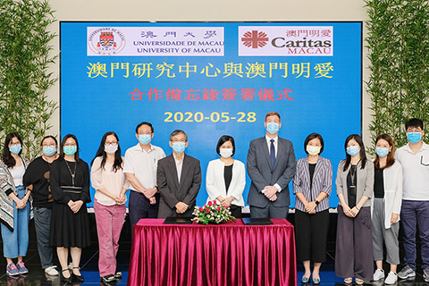 【特訊】為提升社會服務的水平,進一步推動學術與社會服務方面的合作,澳門大學澳門研究中心昨(二十八)日與澳門明愛簽署合作備忘錄。雙方將就科研、研討會、工作坊、社會服務發展、人員互訪、培訓等展開合作,並建立學術資料、信息交換與共享等連繫。