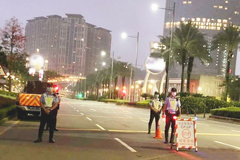 【特訊】在警察總局統籌下,治安警察局展開「雷霆二0二0」行動,維護本澳社區良好治安環境。於五月二十七日至二十八日,特警隊、海島警務廳、情報廳、澳門警務廳及交通廳共派出六十四名人員,分別在澳門及離島娛樂場周邊一帶截查可疑人士、巡查多間娛樂場所、涉嫌用作非法旅館的單位及進行查車行動,以預防及打擊各種不法行為。