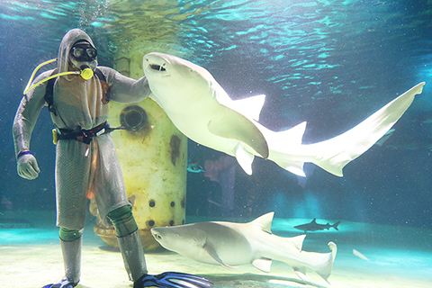 清明假期多地景區爆滿 內地部份景點緊急限流 煙花三月醉江南遊客賞櫻花享春光 台灣第一號高速公路客運失火 西藏13名考僧立宗答辯晉升藏傳佛教格西拉讓巴學位 內蒙清明遭遇「倒春寒」 風雪夾擊民眾踏春遇阻 清明除了掃墓,還應重新理解逝去 中國科研團隊發現一植物新變種 狂風暴雨襲粵 多地提醒民眾到室內躲避 中國兆瓦級氫燃料航空發動機全球首飛 台花蓮5.7級地震 今年最大的一次 內地保障未成年人等 擬規範數字虛擬人服務 3月中國大宗商品價格指數同比漲14.5% 台灣高雄累計六十七人集體食物中毒 南京海底世界上演「海洋奇妙夜」 2020-06-01 03:30:00 ◎ 五月三十日晚,江蘇南京海底世界上演「海洋奇妙夜」,吸引小朋友們前來夜宿海底隧道,感受海洋多樣生態,玩轉「六一」兒童節。圖為潛水員化身海底服務員給鯊魚送餐。( 中新社)