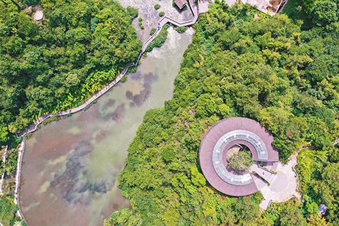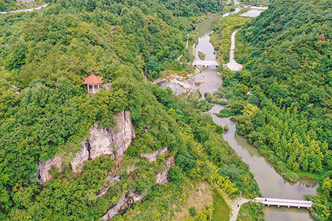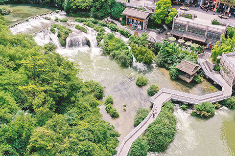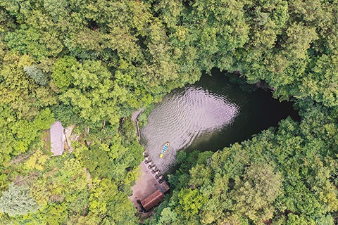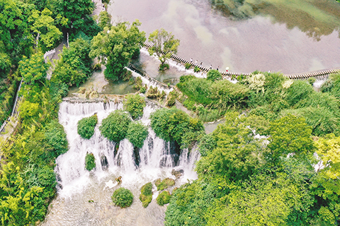 夏日的貴陽市天河潭旅遊度假區草木蒼翠,風景如畫,吸引遊客來此休閒遊玩。