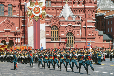 據俄塔社報道,今年共有約1.4萬名官兵參加紅場閱兵,其中包括來自13個其他國家的方隊。此外,還有200餘件地面武器裝備和75架飛機接受檢閱。