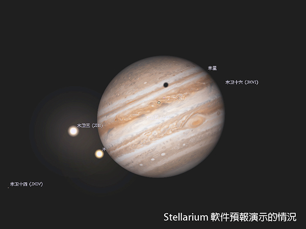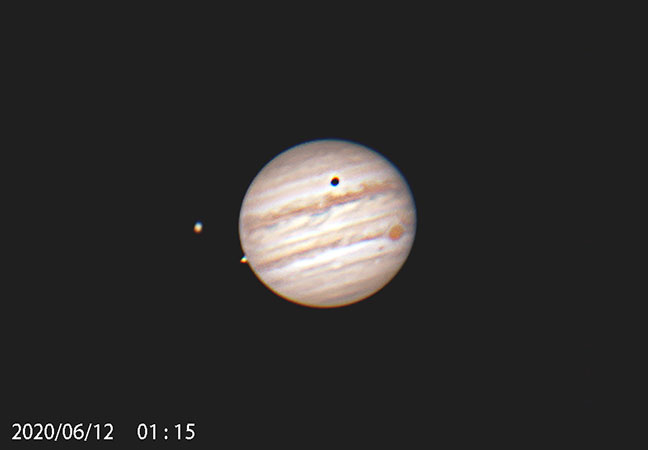隨著木星與地球在軌道上相對運行關係,漸漸進入觀測期,而在它的旁邊也有土星一同出現在東南方天空。六月十二日的凌晨零時至一時,木星出現木衛二和木衛三凌木現象,在短短一小時內,可見這兩顆衛星及黑影在木星表面經過,同時亦見到大紅斑隨著木星自轉的位置變化,充份體現到天體運轉的動感。