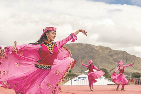 ◎ 演員在新疆塔什庫爾幹塔吉克自治縣端午節群眾性文化體育活動現場表演。當日,新疆塔什庫爾幹塔吉克自治縣端午節群眾性文化體育活動在位於縣城附近的非物質文化遺產展示園拉開帷幕。本次活動為期三天,將舉辦豐富多彩的文藝演出和多項非物質文化遺產展示表演,充實居民和遊客的節日文化生活。