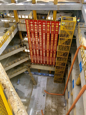 【記者陳藝珠海報道】昨日(六月二十九日)下午,由珠海市建築業協會主辦,中建三局一公司承辦的「濱海深基坑施工技術交流觀摩會」在珠海十字門隧道項目現場舉行。珠海市橫琴新區建環局黨委書記周詠文、珠海市建築業協會會長王愛志、珠海市華發城運公司書記、總裁張宏勇、中建三局安全總監兼工程部總經理趙軍、中建三局一公司副總經理王小林等領導,廣東省各地建設主管單位、有關協會、資深專家、建設單位、諮詢單位、監理單位、施工單位的相關領導和工程技術管理人員三百餘人出席並參加了本次觀摩會。