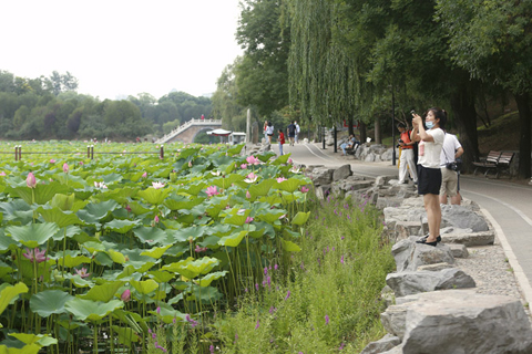 哈爾濱開始進行採冰工作 古堰畫鄉吸引海內外藝術家採風 寧夏生態向好 珍稀動物頻現身 「勢」字當選兩岸年度漢字 滬渝蓉高鐵武宜段試運行 襄陽宜昌一小時達武漢 內地明年起全面禁產水銀體溫計 《自然》公佈年度十大人物 內地兩學者入選 兩岸書畫家筆墨丹青 共同紀念劉銘傳撫台140周年 圓明荷花放 2020-06-30 03:30:00 ◎ 六月二十九日,遊人在北京圓明園遺址公園觀賞荷花。近日,北京圓明園遺址公園的荷花進入開放期,吸引市民和遊客前來觀賞。(中新社記者 韓海丹攝)
