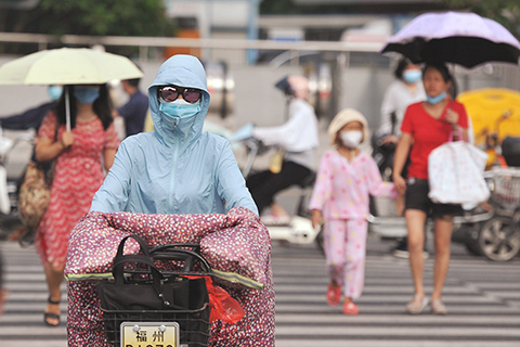 野化馴養基地助力長江水生物種生態保護 創新連接子策略無需基因改造 大幅提升CAR T療效 中國團隊創製白血病療法「雙面膠」 填補國內空白達全球領先水平 首艘集成式大型壓裂船交付 中國學者研製出指尖傳感器 助機器人仿人手觸摸與操作 台灣人口連續廿六個月下降 冷空氣速凍廣東 降溫近攝氏九度 福州市民烈日下「全副捂裝」出行 2020-07-01 03:30:00 ◎ 六月三十日,福建福州,市民烈日下「全副捂裝」出行。截至二十九日,福州市區六月高溫天數達十五天,打破近三十年來六月份高溫天數紀錄。(中新社記者 張斌 攝)