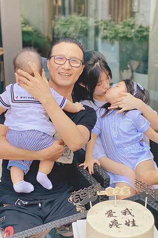 章子怡汪峰一家五口感情融洽