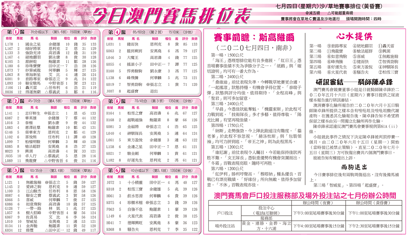 今日澳門賽馬排位表 2020-07-04 03:30:00 (更多內容...) 熱門內容 AI為盾,守護萬…(度勢經文)輩分…(旁觀者言)文化…(繁花集)看「潮…(廣聞博見)拒為…(詩篇)清明回鄉… 免費報紙資料僅提供最近兩年之內容,更久遠之歷史資料瀏覽,請登記申請館藏會員訂閱計劃。