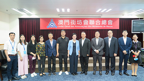 【特訊】澳門航空股份有限公司一行五人在副總經理廖寒西帶領下於六月三十日下午拜訪澳門街坊會聯合總會,獲街總理事長吳小麗、副會長胡達忠、副理事長兼秘書長莫偉成等熱情接待。雙方就澳門航空業及雙方互動合作交換意見。