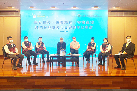 【特訊】由青年聯合會主辦,衛生局協辦的「齊心抗疫、專業精神、守護生命」澳門援非抗疫人員與青年分享會於前日舉行,衛生局李展潤局長、澳門青年聯合會羅奕龍會長、中央人民政府駐澳門別行政區聯絡辦公室宣傳文化部代表徐東杰、仁伯爵綜合醫院李偉成醫務主任、口岸醫學檢查協調員戴華浩醫生、中國國際應急醫療隊(澳門)(下稱醫療隊)參與「中國赴阿爾及利亞抗疫醫療專家組」任務隊員出席分享會,與逾一百名青年分享援非抗疫經驗及進行交流,以提升社會抗疫正能量及士氣。