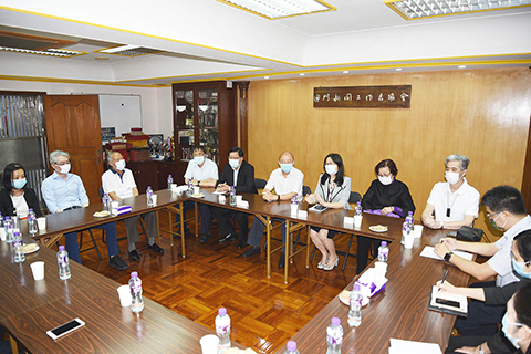 陳露以及新聞局副局長黃樂宜、新聞廳廳長楊寶琴、研究及推廣廳廳長林佩貞、傳媒處處長陳裕康、推廣處處長歐舜華一行昨日下午三時半到訪澳門記協,並聽取記協領導層成員就目前業界疫情期間的營運困境、行業轉型面對的問題及人員培訓等意見。