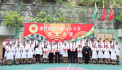 【專訪】「二0一九年度培道中學畢業典禮」昨前兩日上午假該校操場舉行,培道學校教育協進會理事長馬有恆、澳門科技大學校監顧問、國際宇航科學院院士許敖敖、澳門立法議員、澳門大學法學院助理院長邱庭彪、培道中學校董姚汝祥、華子鋒、龔寶美、韋輝樑、澳門培道中學校友會副理事長周成俊、教育出版社經理雷敏儀、濠江都市報社長兼總編輯許焯勝等應邀出席主禮,氣氛融和溫馨。