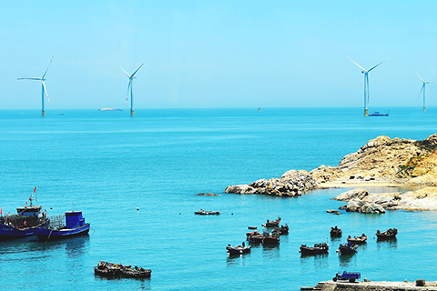福建海上風電加速發展 2020-08-08 03:30:00 ◎ 八月七日,福建平潭,一海上風電項目正在建設中。受台灣海峽狹管效應影響,福建風能資源非常豐富。按照規劃,到二0二0年底與二0三0年底,福建省海上風電裝機規模將分別超過二百萬千瓦、五百萬千瓦,成為中國海上風電併網裝機前三名省份。(中新社)