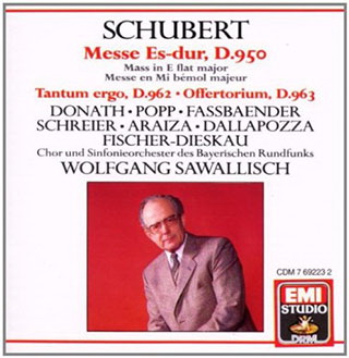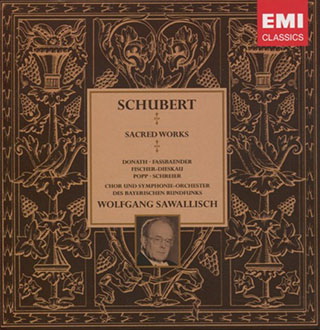 沙華利殊(Wolfgang Sawallisch 1923-2013)於上世紀七十年代末至八十年代初指揮巴伐利亞交響樂團及合唱團演繹的舒伯特宗教作品,手法精闢細膩,感情投入適度,結合高水平的合唱團,處理可謂絲絲入扣。錄音亦邀得幾位知名聲樂家如Helen Donath、Lucia Popp、Peter Schreier及Dietrich Fischer-Dieskau等坐陣,具有相當高的號召力。這系列錄音後來結集成7CD以平價推出,當中輯錄了舒伯特所有彌撒曲及最重要的宗教合唱作品,由於演繹與錄音俱佳,一直是同曲目唱片中最具份量的版本。◇