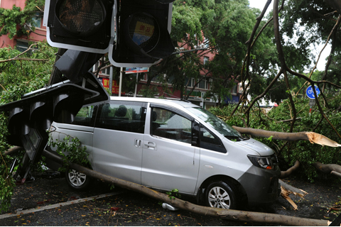 【中新社漳州8月11日電】(記者張金川)「幸運的是這棵大樹往外倒,不然我店就被壓倒了。」提及今天的颱風,位於福建省漳州市大通北路的一家彩票店老闆心有餘悸。