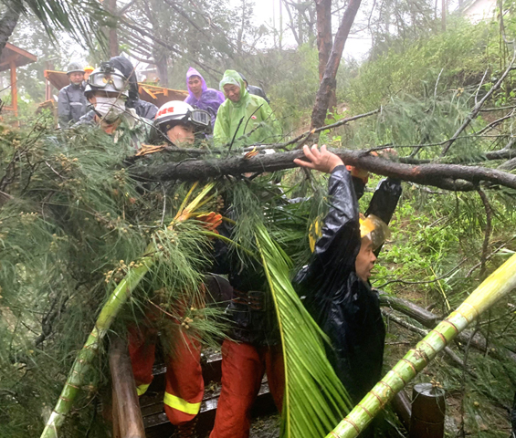漳浦火山島景區度假村別墅屋頂被吹翻有人員被困房間,便是其中一起。據了解,11日7時25分許,該支隊立即調派漳浦大隊大隊部及赤湖站2車12人趕赴現場處置。8時15分,指戰員抵現場發現火山島景區門禁被損壞,首先對門禁進行切割,隨後在景區負責人配合下進行人員疏散,疏散過程中對倒塌的樹木進行切割,最終將被困點遊客全部轉移至安全地點。