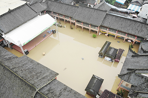 【中新社成都八月十七日電】作者 賀劭清 單鵬 王鵬)連日來,成都多次遭遇強降雨襲擊。十七日,暴雨導致成都市多處內澇積水,有近二000年歷史的黃龍溪古鎮被淹,有記錄以來第二大沱江洪峰過境金堂縣城區。