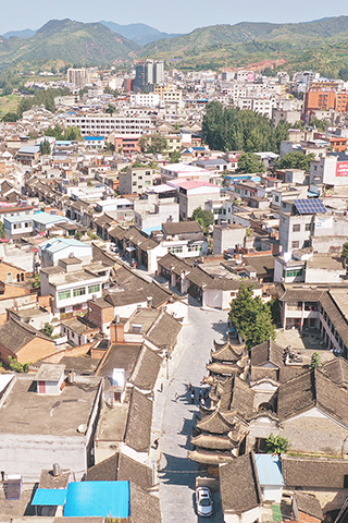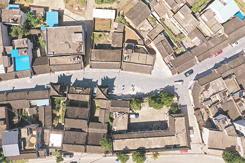 ◎ 這是本月廿五日拍攝的河南省南陽市淅川縣荊紫關古街(無人機照片)。(新華社記者馮大鵬 攝)