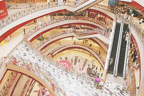 ◎ 八月二十六日,民眾在上海南翔印象城購物。上海單體量最大的純商業購物中心──上海南翔印象城MEGA二十五日正式開業。總面積達三十四萬平方米的上海南翔印象城MEGA,由地下兩層、地上六層組成,定位為「一日微度假勝地」,引入品牌數量超過四百個,品牌涵蓋零售、餐飲、娛樂、休閑、生活、兒童等領域。(中新社 殷立勤攝)