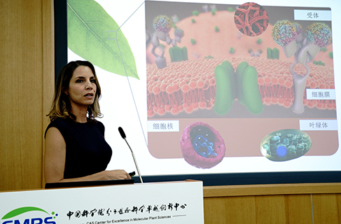 在中科院先導B等項目支持下,西班牙籍科學家羅莎·洛薩諾-杜蘭帶領研究團隊,揭示了一條連接細胞膜和葉綠體的重要信號傳遞途徑。研究發現,當一些特定的植物蛋白感知到病原體存在時,可從細胞膜轉移至葉綠體內部,「警告」葉綠體有威脅存在。緊接著,葉綠體通過「逆行信號傳遞」過程,將這些信息傳遞至細胞核,從而調節抗病基因表達,激活防禦以對抗入侵者。