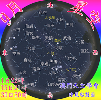 火星留:9月10日1點47分。海王星衝:9月12日4點26分,視亮度7.8等。木星留:9月13日7點55分。土星留:9月29日10點51分。◇ (建燁)