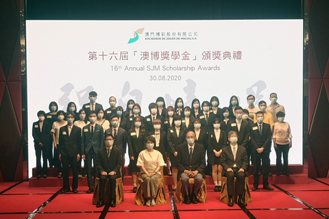 「澳博獎學金」旨於獎勵優秀的員工子女升讀高等教育課程,致力為澳門培育人才。今年共有三十名學生申請「澳博獎學金」,經「澳博獎學金」評審委員會審核成績及進行面試後,選出了十名表現優異的學生頒發二0二0年度「澳博獎學金」,他們分別是梁凱晴,高偉盛,馮俊昇,蔣慧明,何俊傑,何宇傑,蔡慧儀,蔡依苓,何文政和梁詠妍,每人每年獲頒獎學金二萬澳門元,直至其修畢大學課程止。昨天,澳博亦向二十七名尚在就讀的往屆(二0一九、二0一八、二0一七及二0一六年度)「澳博獎學金」得獎學生續發新學年的獎學金(每人二萬元),其中李雅秀和譚浩然在上學年度取得最佳成績,各獲頒「成績優異獎狀」及書簿金五千元,以資嘉許。