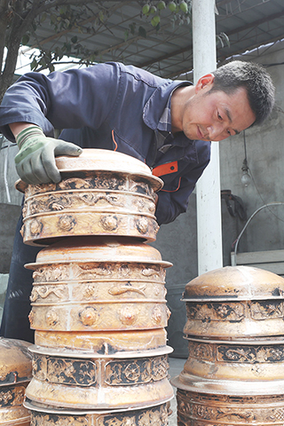 老手藝變身致富「新法寶」 2020-09-03 03:30:00 ◎ 九月二日,甘肅省岷縣清水鎮蔣家村,工作人員正在忙碌。甘肅省岷縣清水鎮手工翻砂銅鋁鑄造已有五百多年的歷史。近年,清水鎮蔣家村通過「企業+協會+貧困戶」的模式相繼帶動村裡三百多戶村民從事銅鋁鑄造翻砂產業。如今,村裡鑄造的傳統大鍋、火盆及藏傳佛教法器等暢銷海內外,使老手藝真正地成為致富「新法寶」。(中新社)