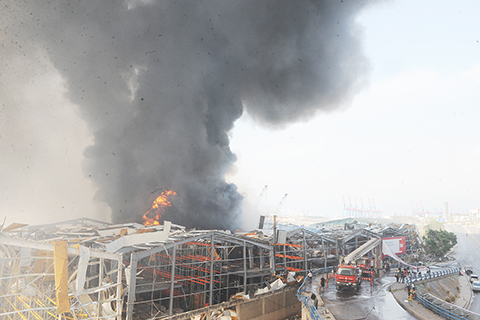據當地媒體報道,火災發生在當地時間十三時三十分左右。黎軍方在社交媒體推特上發表聲明說,起火地點為港口免稅區內存放輪胎和油料的倉庫。