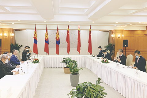 訪問期間,王毅會見了蒙古國總理呼日勒蘇赫,同外長恩赫泰旺舉行會談、簽署合作文件並共同會見記者。雙方重申並確認,中蒙將相互尊重主權、獨立和領土完整,互不干涉對方國家的內部事務,共同維護好兩國關係的政治基礎。◇