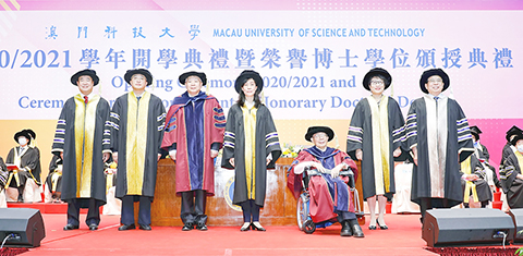 歐陽瑜昨日代表行政長官賀一誠出席澳門科技大學二0二0/二0二一學年開學典禮暨榮譽博士學位頒授典禮,
