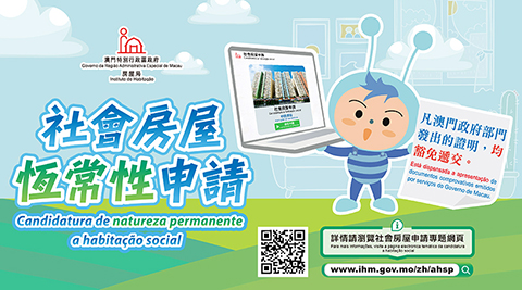 社會房屋恆常性申請已實施,網上申請於二0二0年九月二十七日推出,申請人須向行政公職局申請「澳門公共服務一戶通」電子帳戶,以便於統一的網站平台或流動應用程式使用由特區政府提供的各項電子化服務。