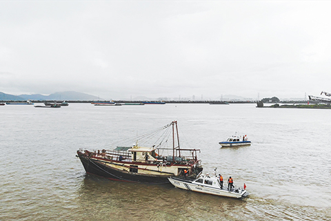 本月十九日十三時二十五分,珠海市發佈雷雨大風黃色預警。此時,拱北海關緝私局派出的兩艘緝私艇已經在暴雨傾盆的磨刀門水道埋伏了一個小時,水上行動小組耐心等待著一艘港澳流動漁船的出現。雨越下越大,水面能見度不足五十米,緝私員警冒雨在甲板上進行觀察。十六時三十分,目標船隻在雨中出現,指揮部一聲令下,兩艘緝私艇迅速採取包抄戰術將目標船隻截停。緝私員警即刻跳上了該船,並立即分頭跑向駕駛艙和生活艙,迅速控制住了船上三名嫌疑人。其他陸上行動小組也同步展開抓捕行動。