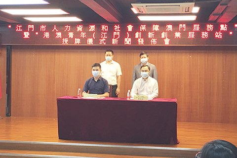 錢傑潤於會上介紹,江門市人社局通過運用互聯網技術、加強服務的電子化和信息化,希望將江門當地的人社政策和最新服務精準推送給有需要的澳門居民和企業。未來,江門市人力資源和社會保障澳門服務點將可為澳門市民提供「網上辦、跨境辦、自助辦」的便捷服務,具體服務內容包括:創新搭建澳門線上服務人社專區,提供灣區政策智能匹配、「雙創園」入駐申請、事業單位招聘報名、補貼申領等五十多項「零跑腿」服務,實現江門事線上辦;設立人社線下跨境服務點,依托江門同鄉會安排專職人員負責政策解讀、資料收取、材料初審等工作,將相關材料定期帶回江門市人社部門,免去澳門同胞辦事兩地跑,實現江門事跨境辦;鋪設人社自助終端設備,提供辦理江門市社保咭、養老年審、證明材料打印等自助服務,實現江門事自助辦。