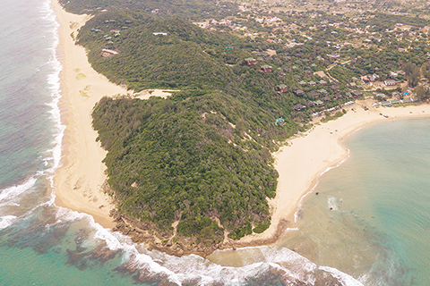 ◎ 這是莫桑比克黃金角的海灘(二0一九年十一月廿六日無人機拍攝)。(新華社記者 張宇 攝)