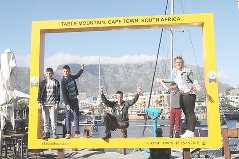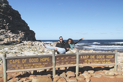 ◎ 遊客與南非好望角標牌合影(二0一五年六月廿六日攝)。(新華社記者 高原 攝)