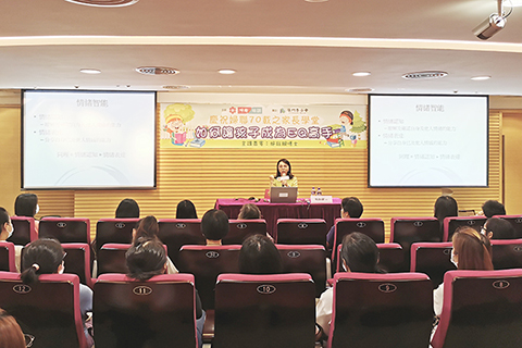 【特訊】為了讓家長正確面對孩子情緒,以平常心了解及處理孩子情緒問題,婦聯教育培訓中心早前在婦聯綜合服務大樓三樓舉辦「慶祝婦聯七十載之家長學堂──如何讓孩子成為EQ高手」講座,邀請澳門心理分析學會理事長、榮格心理分析師施鈺鋇博士為家長進行講解,吸引逾八十位市民參與。