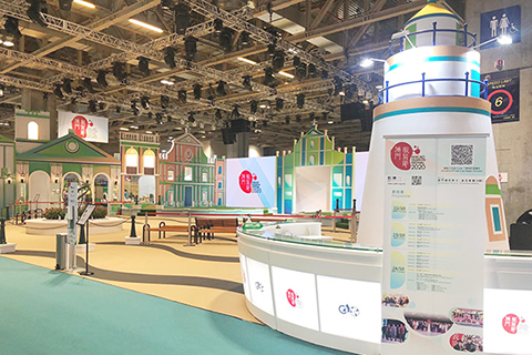 今年時裝表演場地亮點在於開放式的「花園」設計,邀請到澳門插畫師協會合作,場內使用多個世遺著名景點,包括大三巴牌坊、媽閣廟、松山燈塔等,區別於以往時裝T台風格,以「花園」為題,把時尚與旅遊休閒結合。