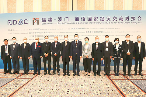 【特訊】由福建省商務廳和澳門貿易投資促進局主辦,國際葡語市場企業家商會、葡中工商會澳門分會、澳門葡語系國家地區酒類及食品聯合商會、巴西-中國(澳門)實業協會協辦,福建省國際投資促進中心承辦的「第二十五屆澳門國際貿易投資展覽會之福建-澳門-葡語國家經貿交流對接會」及「福建省商務廳駐澳門商務聯絡處」授牌儀式,日前在威尼斯人佛羅倫斯廳舉行,來自三地政府及企業家均希望通過活動,和透過澳門「中葡平台」與「一帶一路」的契機,可以進一步拓展福建與葡語國家合作的廣度與深度。