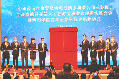 【專訪】海南省委主辦的中國海南自由貿易港瓊港澳服務業合作示範區、港澳台地區專業人才在海南執業「管理辦法」推介會暨澳門海南青年企業家協會揭牌儀式等活動昨日上午假美獅美高梅宴會廳舉行,希望能搭建瓊澳互利合作平台,鼓勵和吸引港澳企業、人才到海南投資興業,把握『海南自貿港』建設新機遇,共同融入國家發展大局。