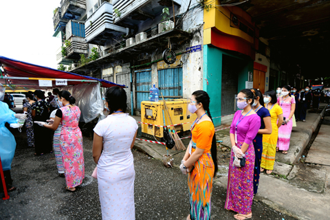【新華社仰光十一月八日電】(新華社記者張東強 車宏亮)八日早晨五時許,天還沒亮,緬甸仰光淡汶鎮區一個投票站前,不少戴著口罩和面罩的選民開始有序地排隊等待投票。