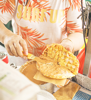 今期,筆者跟隨網絡上的甜品專題平台《甜覓行》來到位於司打口河邊新街的「梁太小食檔」,這裡主打港澳街頭小食界的代表夾餅與雞蛋仔,由梁太的丈夫開始經營,想不到原來屹立在這個街頭已經幾十載。在小食界稱霸的梁太甚有影響力,每逢開檔起爐,食客總會因為蛋香盛開而停低腳步,無論是大人或學生哥都甘願被這份簡單的美味俘虜,乖乖地為梁太的誠意製作等待排隊。