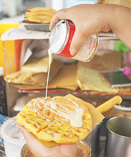 若要在眾多項目中只能選一項,那筆者一定會選最喜歡的夾餅了!接過單後,梁太便會以熟練的功架,在烘至熱騰騰的夾餅上揮灑上大量砂糖、花生醬、煉奶及牛油!花生醬的比例經過調整,濃稠程度恰好,細膩順滑,流落在入口綿密而且厚度驕人的夾餅上,對我來說絕對是人間美食呀!