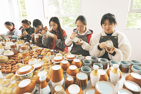 近年來,貴州省赤水市依託豐富的竹資源,引導農民大力發展竹編產業,並不斷創新竹編工藝,開發出平面竹編、立體竹編、竹編套繪三大類八大系列三千餘種產品,產品遠銷海外。二0一四年,「赤水竹編」被列入貴州省級非物質文化遺產名錄。目前,赤水竹編非遺產學研基地已培訓當地農民五千餘人,輻射帶動全市十七個鄉(鎮)街道辦事處眾多農村婦女在家門口就業增收。◇