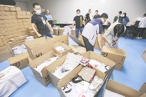 經初步查證,涉案團夥通過網路平台承攬訂單,僱請人員接收從境外訂購的奢侈品牌箱包、服飾,組織「水客」走私進境。