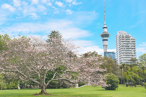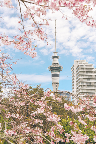 ◎ 奧克蘭市中心櫻花盛開(十月十日攝)。