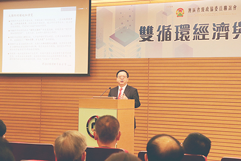 代表主辦方發言的澳區省級政協委員聯誼會會長馬志毅表示,澳門處於國內循環與國際循環兩個循環圈的交匯點上,這既是機遇與優勢,也是責任與擔當。過往以來,澳門經濟發展一直受限於土地資源、高素質人才短缺等重要因素的制約。面對當前的發展形勢,澳門社會各界應積極尋求有效途徑,全面釐清內循環和外循環的核心本質,通過調動各行業自身的積極因素,充份發揮澳門的中葡平台和多元文化交流基地等優勢,全方位多元化參與雙循環,推動澳門進一步融入國家發展大局,藉此改變現狀,開闢新局面。