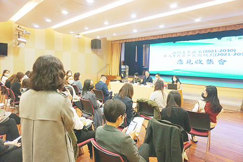 參與的青年女性在聽取諮詢文本介紹後踴躍發言,分別就青年人的身心健康、融入灣區發展、青年人向上流動、加強國際視野等多個範疇發表意見。其中,建議加強關注青年人身心健康,營造關注青年健康的社會氛圍。在融入大灣區方面,建議擴大粵港澳大灣區專業範疇的互認,促進青年人進入灣區就業;推動互聯互通和區域之間的合作,加強與各地相關政策溝通,配合及推動各地青年政策之規劃,助力青年融入國家發展大局。在人才培養方面,建議增加青年人才回流計劃,鼓勵青年人回澳貢獻澳門。在《教育規劃》方面,期望透過課程及駐校社工開展恆常的心理健康輔導,助學生認識及處理情緒;持續加強普法教育,關注青年老師的素質培養,進而培育出新時代公民。在性別主流化以及性別平等教育上,期望未來加強引導,讓青年人不受角色定型所限,發掘自身更多潛能。