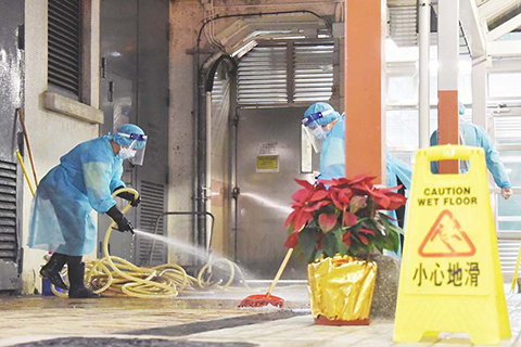 潘岳忠還說,原來一些公共場所只需要一天之內在上班時間清潔兩次,但現在要求每小時清潔一次,工作量驟增四倍。